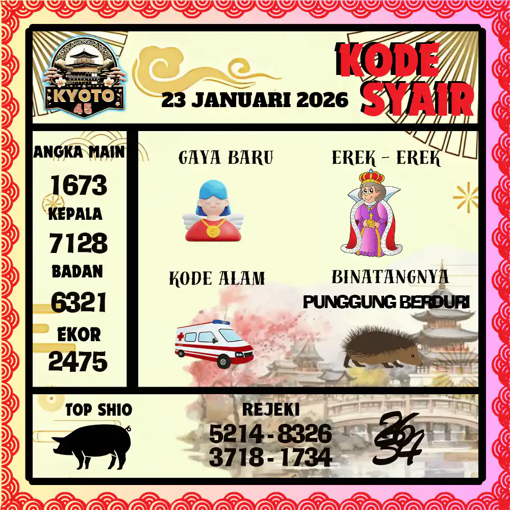 Kode Syair Kyoto45 Pools 23 Januari 2026