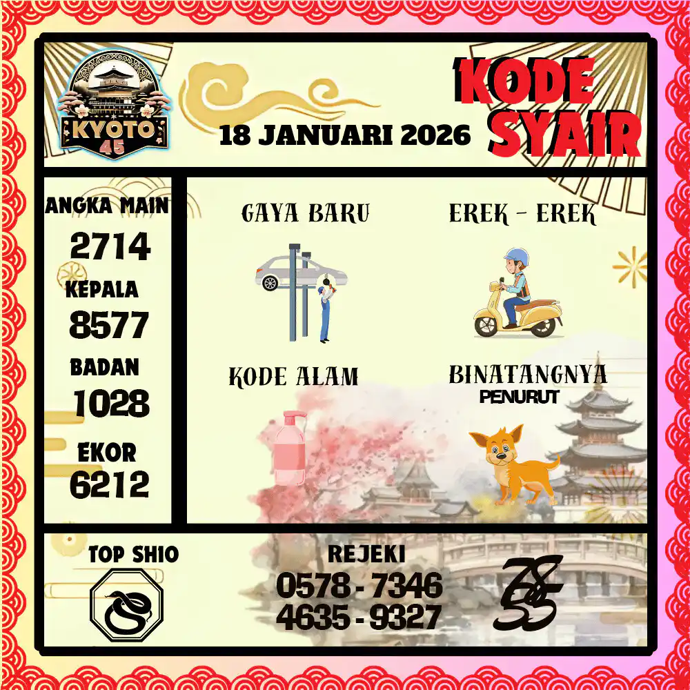 Kode Syair Kyoto45 Pools 18 Januari 2026