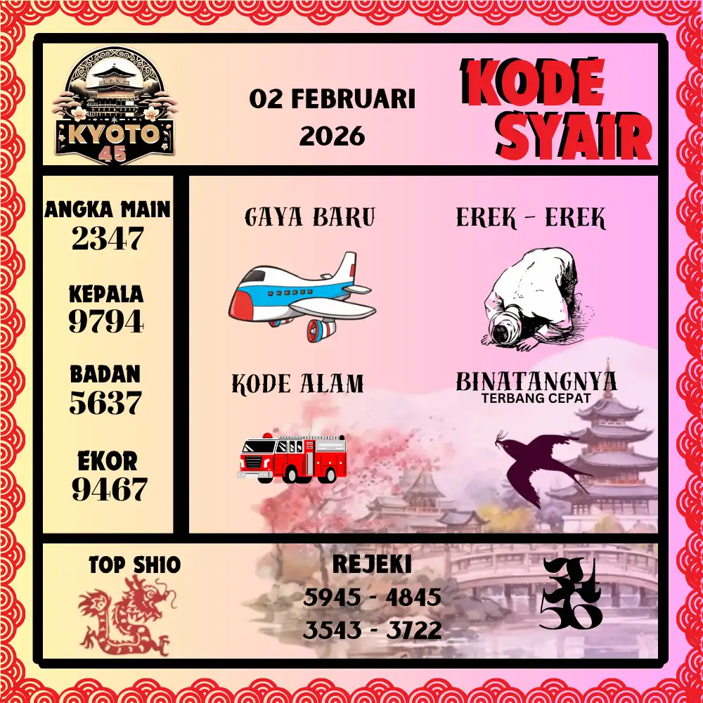 Kode Syair Kyoto45 Pools 02 Februari 2026
