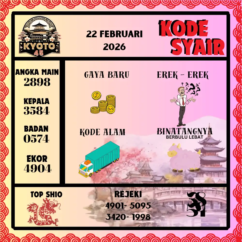 Kode Syair Kyoto45 Pools 22 Februari 2026