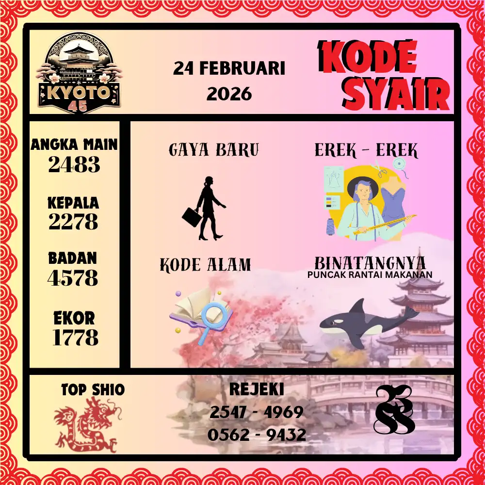 Kode Syair Kyoto45 Pools 24 Februari 2026