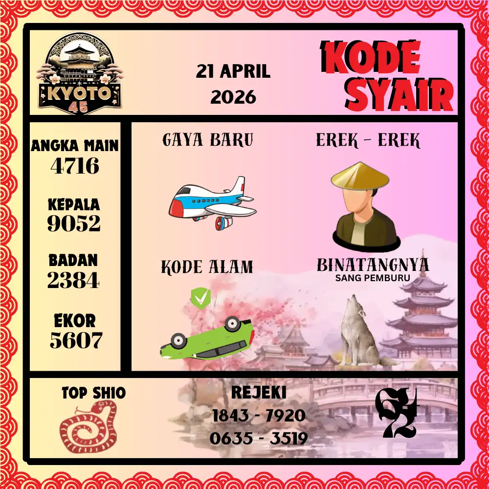 Kode Syair Kyoto45 Pools 21 April 2026