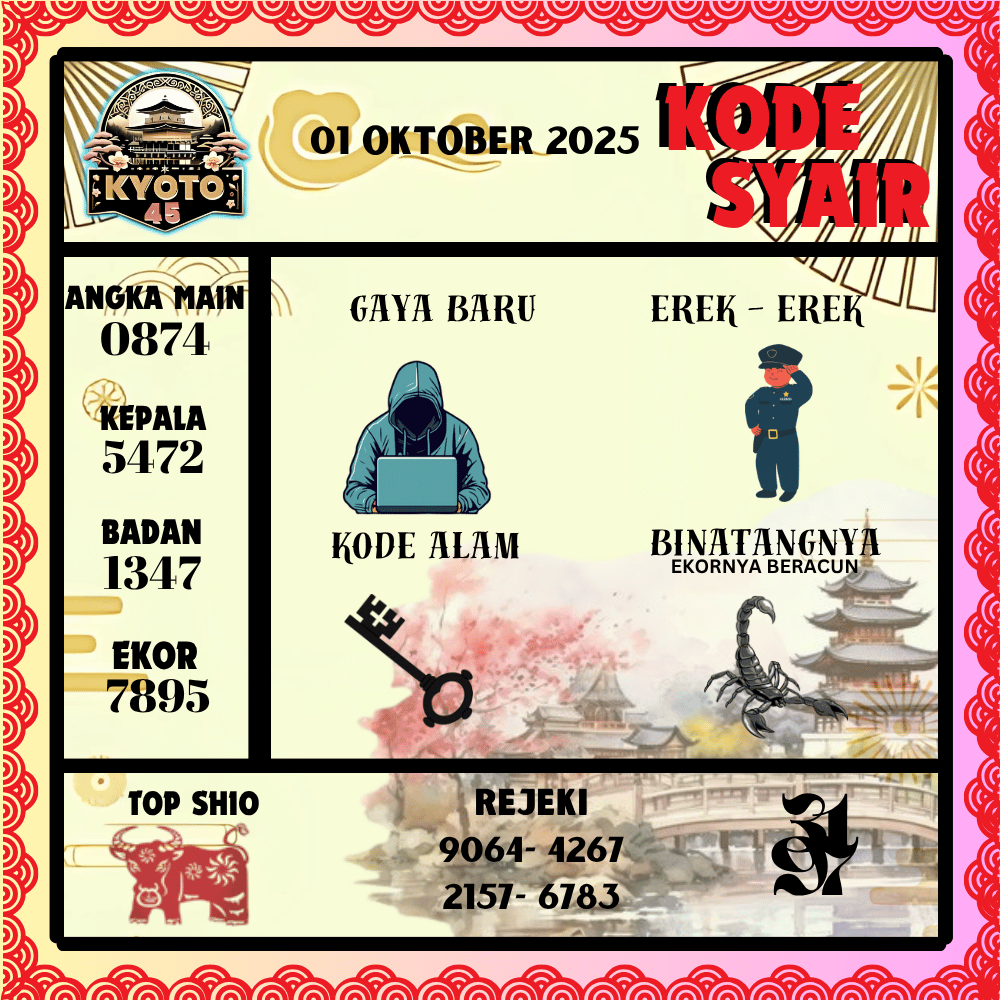 Kode Syair Kyoto45 Pools 01 Oktober 2025